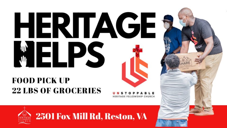 Under its Heritage Helps program, Heritage Fellowship Church will again offer food distribution Saturday, August 22 at 10:00 a.m. Though the building is closed due to COVID-19, residents can drop by the rear of the facility to pick up a box of groceries. The food boxes are available while they last. #heritagereston #pastordbs #christcongregationcommunity #HeritageHelps