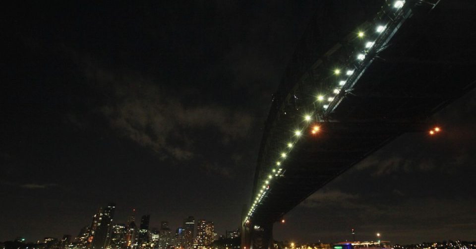 The Sydney Harbour Bridge and city skyline during Earth Hour March 23, 2013. Earth Hour, when everyone around the world is asked to turn off lights for an hour from 8.30 p.m. local time, is meant as a show of support for tougher action to confront climate change. REUTERS/David Gray