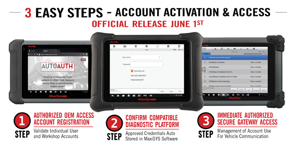Autel tablet users will be able to gain access to the SGW module and perform previously restricted actions by registering with AutoAuth, an authentication service. Shops can register through AutoAuth’s Internet-based registration portal for $50 a year. Up to six users can register under this initial fee, with additional users able to register for an additional nominal fee. The next step is for the shop to register its Autel tablets, up to 100 tools, on the site. Starting June 1, 2020, Autel will “push” the software to all North American market tablets with active software subscriptions. Users with tablets out of subscription can purchase a Total Care Program software and warranty renewal through their authorized Autel dealer.