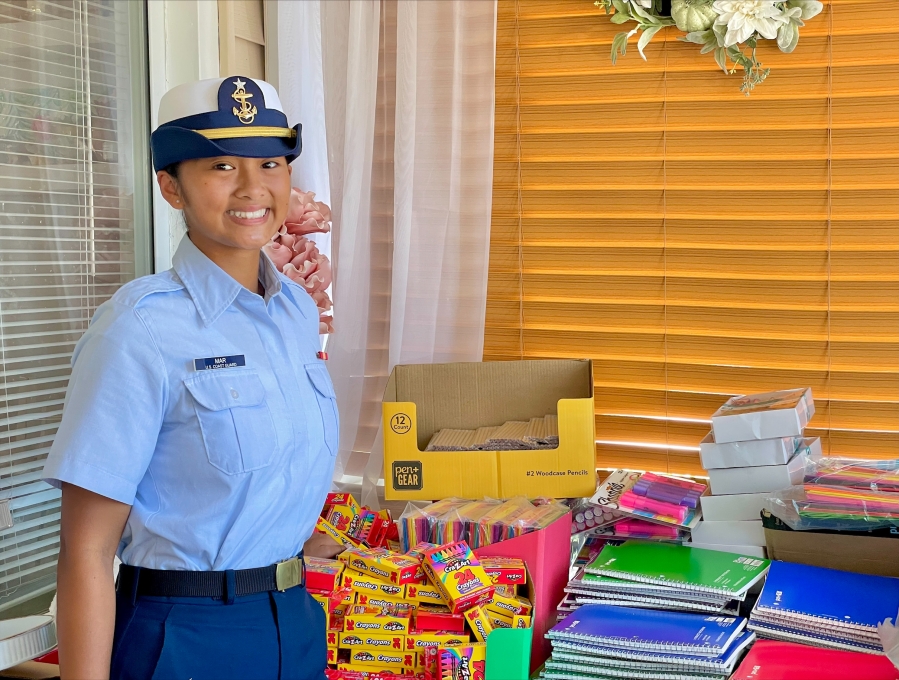 Emily Mar recently returned home from the US Coast Guard Academy to get the supplies together with her team before the big drive. Supplies included notebooks, folders, USBs, a backpack, and much more. All the supplies were donated by local businesses.