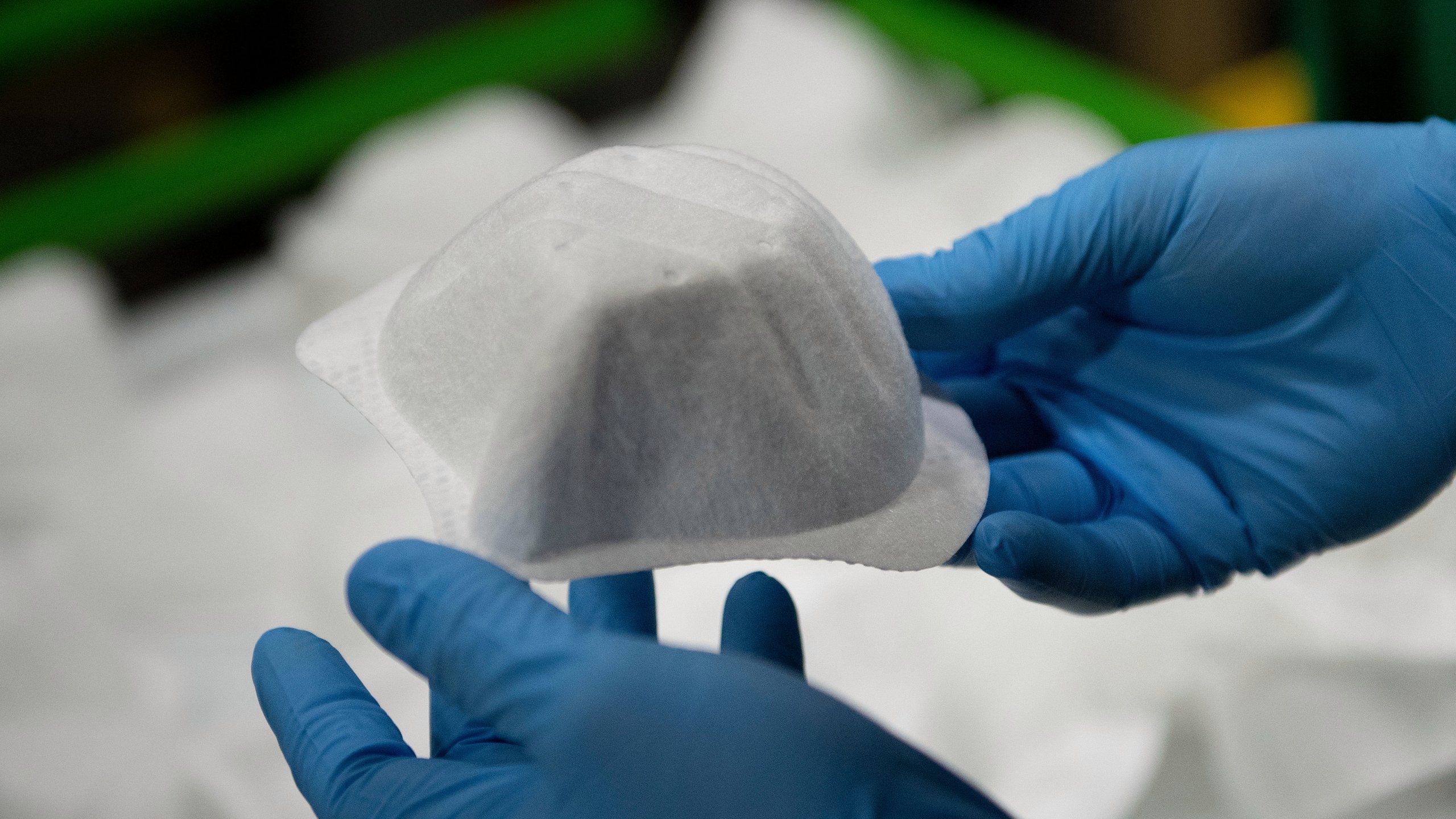 A worker at a Honeywell International Inc. factory works on N95 masks May 5, 2020, in Phoenix, Arizona, during a visit by the US president. (Photo by Brendan Smialowski / AFP) (Photo by BRENDAN SMIALOWSKI/AFP via Getty Images)