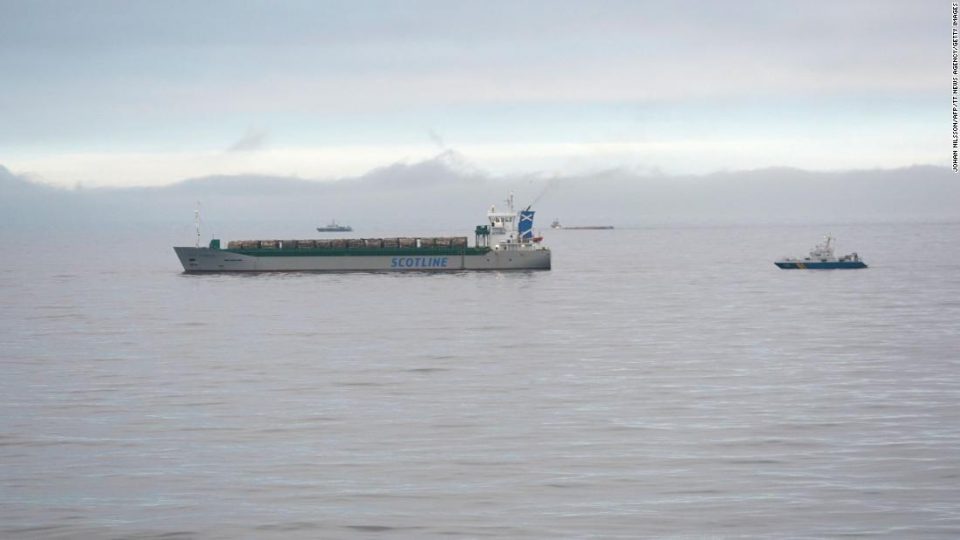 Data from MarineTraffic.com showed that the Karin Hoej was traveling to the southern Danish city of Nykobing Falster. The Scot Carrier was headed from Salacgriva, Latvia, to the Scottish town of Montrose.