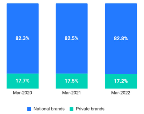 Great Value (Walmart PL) | 6.0% | 22.8% | + 16.8 ppt |