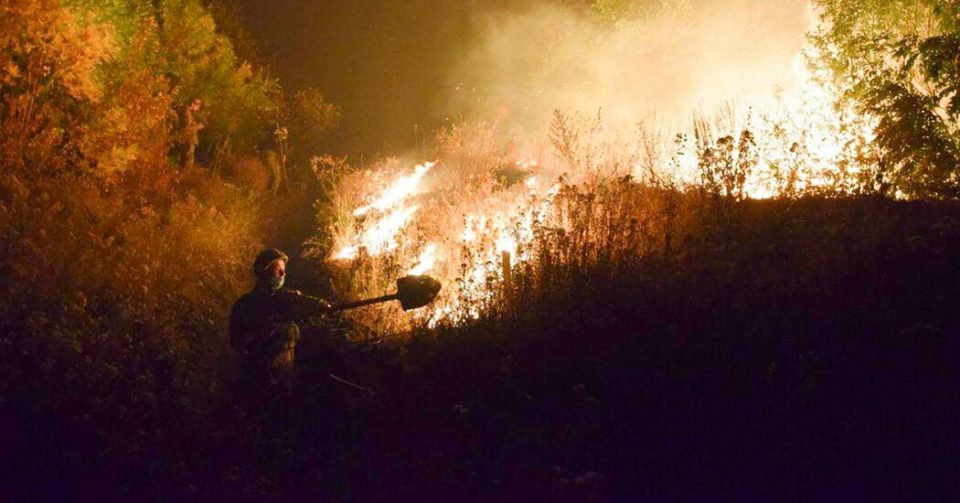The fire is burning through an area of grassy hills and pine forests, all tinder dry, in the Luhansk region, near the border with Russia and divided by the front line in the war, which began in 2014 and has settled into a long stalemate.