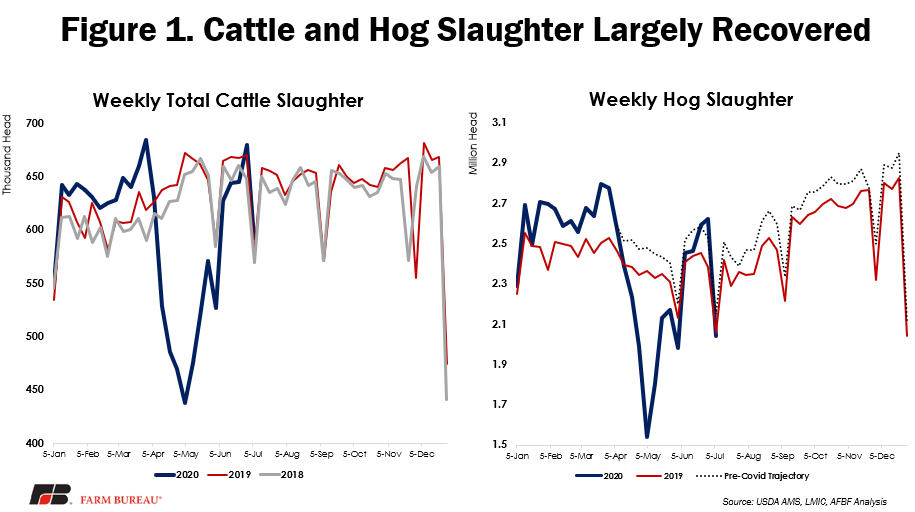 Slaughter rates are returning to near normal and weekly beef and pork production is exceeding year ago levels, but it wasn’t that long ago that consumers were emptying grocery store shelves and processing facilities were closing due to labor and COVID-19 issues – leading to daily dire predictions of meat shortages in the U.S.