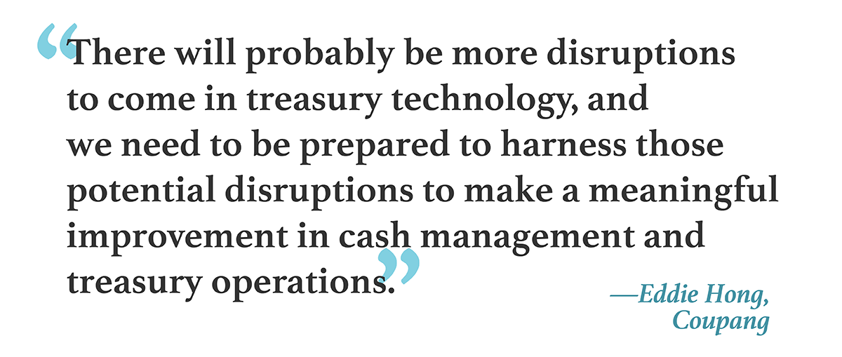 Hong’s team continues to work to improve operational efficiency, but their new, consolidated approach to treasury management is leaps and bounds ahead of the tedious manual processes that Coupang treasury formerly utilized. “We live in a world where technology can disrupt the ordinary course of our lives in a good way or a bad way,” Hong concludes. “There will probably be more disruptions to come in treasury technology, and we need to be prepared to harness those potential disruptions to make a meaningful improvement in cash management and treasury operations.”