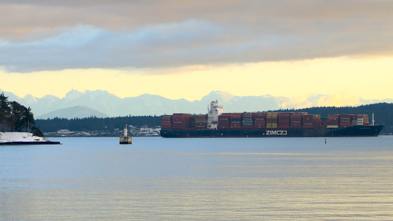 MV Zim Kingston was anchored for several weeks off Victoria before it was escorted to Nanaimo in early December.