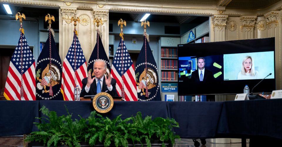Mr. Biden had planned to speak following his supply-chain meeting with top executives from large grocers, like Food Lion and Kroger, and a range of retailers, like Best Buy and Etsy. But administration officials abruptly canceled his White House remarks less than a half-hour before Mr. Biden had been scheduled to speak, saying the president wanted to spend more time in conversation with the executives. His remarks were rescheduled for Wednesday.