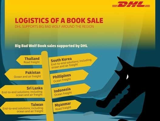 The Big Bad Wolf Book Sale, which started in 2009 in Malaysia, organises sales with affordable books and large-scale book sale events in countries like Sri Lanka, Pakistan, Thailand, Myanmar, Indonesia, Philippines, South Korea and Taiwan. DHL has so far transported around 70 TEU (twenty foot-equivalent unit) of books to these events.