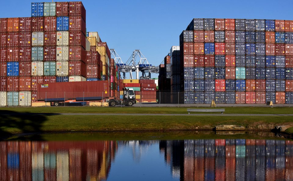 A truck picks up a shipping container at the Port of Savannah in Georgia. The supply chain crisis has created a backlog of nearly 80,000 shipping containers at this port, the third-largest container port in the United States, with around 20 ships anchored off the Atlantic coast, waiting to offload their cargo.
