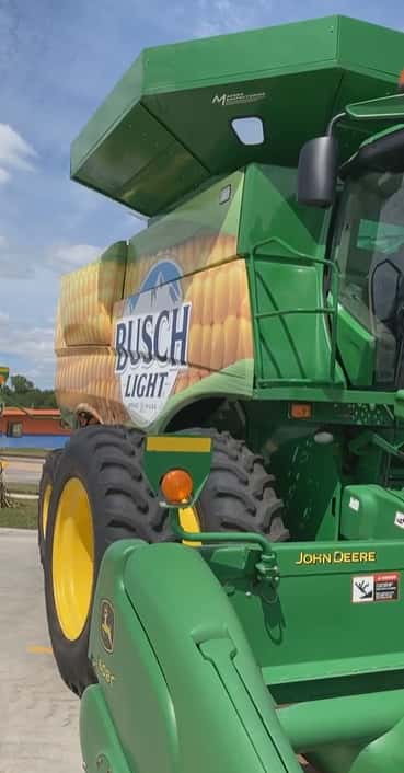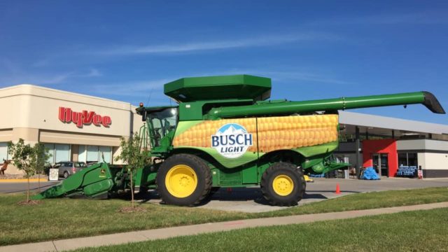 Auen adds that there is nothing more “Iowan” than a combine with Busch Light on it, especially in Carroll County. Photos of the combine and a link to a Facebook Live Hy-Vee promotion with Carroll Broadcasting’s John Ryan can befound below.