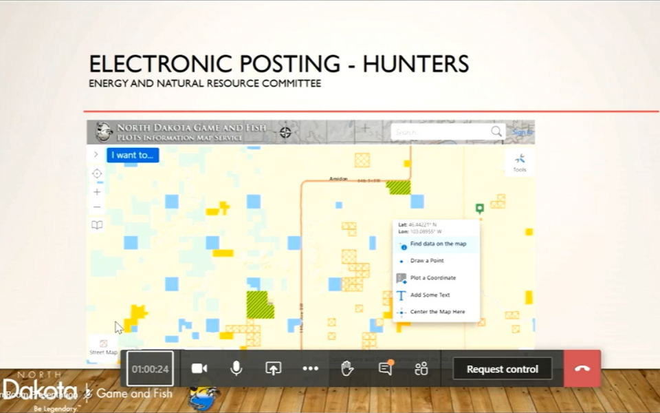 An electronic posting system created by the North Dakota Department of Game and Fish allows several options for learning about whether land is open to hunting and fishing. (Screenshot of North Dakota Legislature hearing)