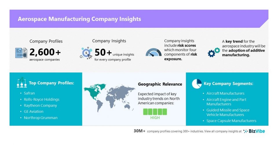 BizVibe’s aerospace manufacturing industry insights cover the following segments.