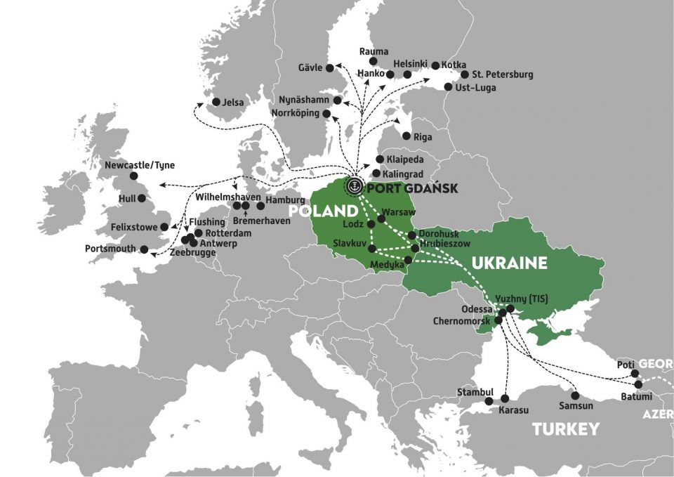 Existing routes from Black Sea to Baltic source: Port of Gdansk