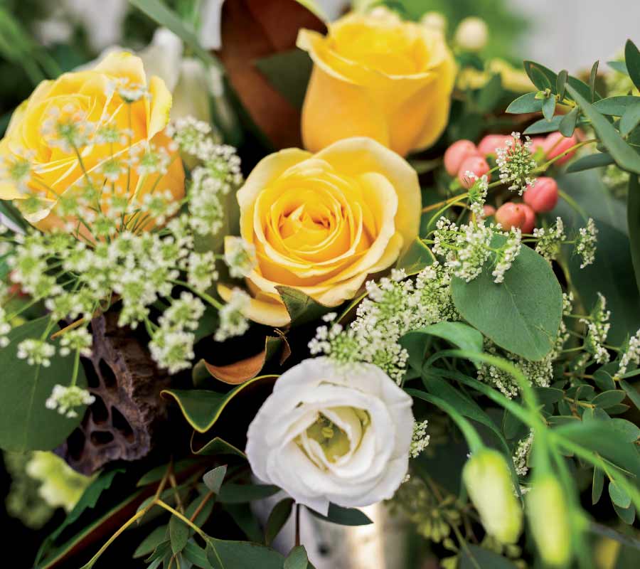 “I love the whole process. When I visit the wholesaler, I get to see what’s special and what is in season. I never tire of seeing what comes from different parts of the world; I can’t wait to get back to the store to begin arranging what I’ve found,” Cassato exclaims. “I typically start with a focal flower, adding greenery for height and dimension. I love spray roses and look for unifiers to tie it all together. Best of all, our business makes people happy. Whether someone just wants to pop in and ask us to put together the perfect bouquet or talk about floral arrangements for a special event, the job is always fun.”