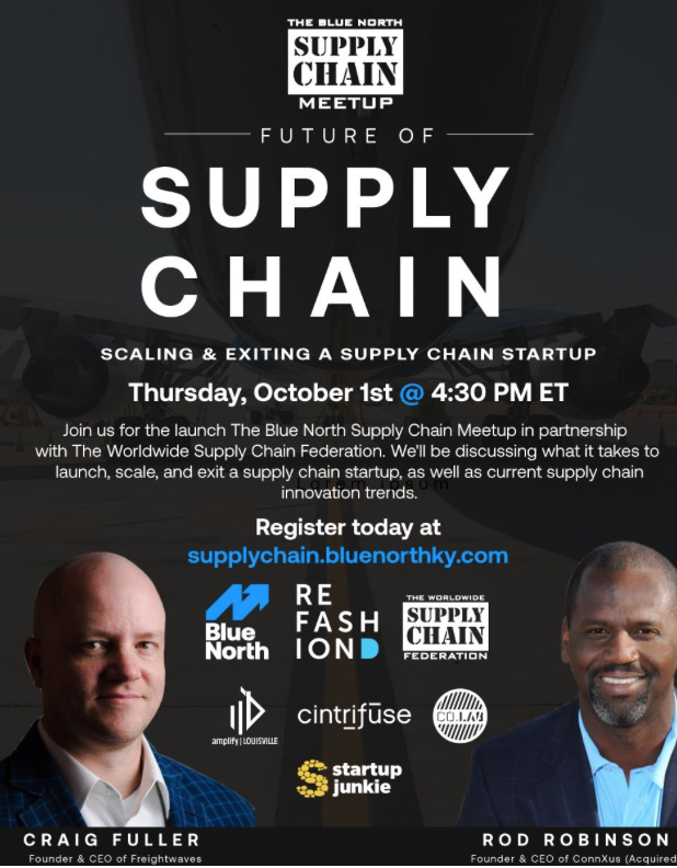 This Thursday (Oct. 1) will see the launch of The Blue North Supply Chain Meetup (#TBNSCM) with follow-up events to take place on the first Thursday of each month. Hosted via the online platform Hopin at 4:30 p.m., the inaugural event will focus on “Scaling & Exiting a Supply Chain Startup” with Craig Fuller, CEO of Freightwaves and Rod Robinson, President & CEO of ConnXus, serving as the featured speakers. Supply chain startups throughout Kentucky, Ohio, Indiana, Tennessee and NW Arkansas are invited to join #TBNSCM via Meetup and can apply to pitch here today.