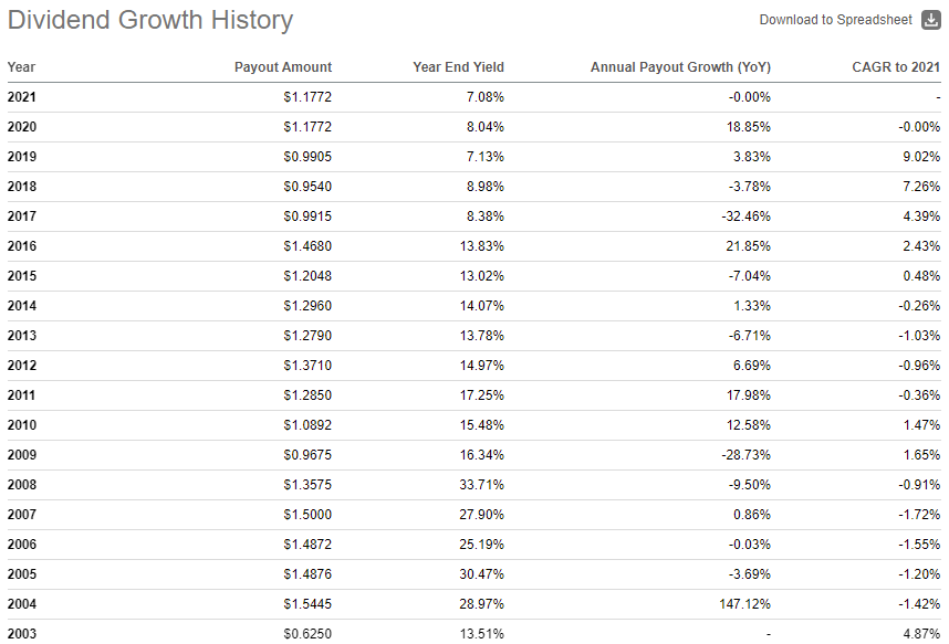 The small portion of the fund’s distribution which is not covered by income could easily, plausibly be covered by capital or trading gains, and so do not imply ROC distributions or declining NAVs. This has mostly been the case in the past, with the fund’s NAV remaining mostly stable for the past decade or so. NAVs have decreased by quite a bit in the past few months, in-line with high-yield indexes, as interest rates pressure bond prices, but there have been no sustained, consistent reductions in the fund’s NAV which would indicate an unsustainable distribution.