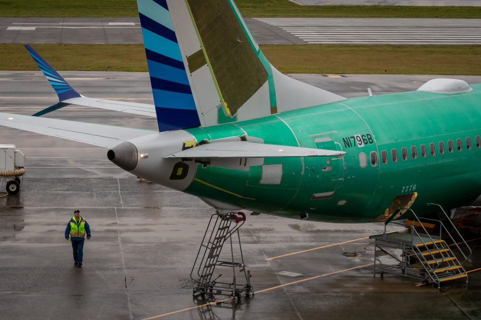 A worker inspects a Boeing 737 MAX aircraft at Boeing’s Renton Factory on October 20, 2019 in Renton, Washington.