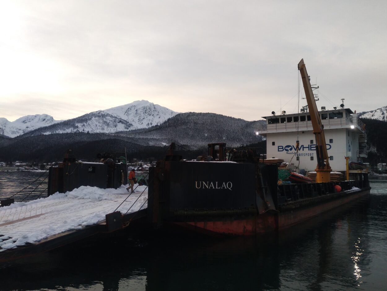 The Unalaq was built in 2014 as a landing craft to take heavy equipment to western Alaska and the Arctic. It’s nearly 150-feet long with a 50-foot wide cargo deck for roll on, roll off vehicles and freight.