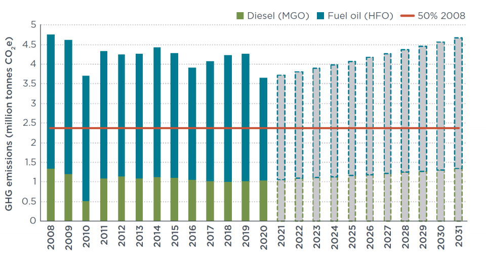 Figure. Projected GHG emissions from cabotage in Brazil through 2031