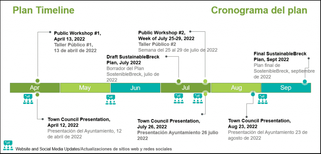 Next, consultants will conduct interviews with stakeholders and have meetings with the Town Council. Data collection and analysis will occur, as well, along with digital updates of the process. In July, a draft of the plan’s revisions will be presented, and by September, the final version will be completed.
