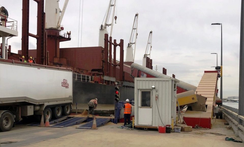 RainAg last week loaded its first vessel on behalf of clients at the Wagners wharf at Pinkenba. Photo: Mobile Conveying Services