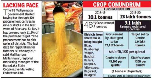 While inaugurating the threeday third Pashu Mela in Bidar earlier this month, BS Yediyurappa had said he would double the 10 quintalquota set by the central government under a system that guarantees a minimum support price (MSP) of Rs 6,100 for farmers. The procurement is meant to provide some relief to many tur growers, who have been unable to sell their stock because of a glut in the market.
