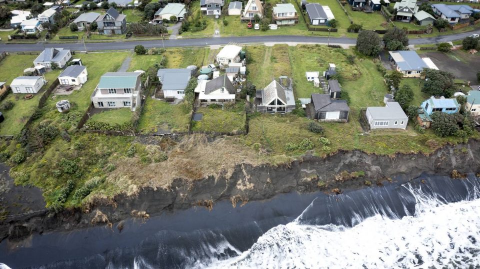 Port Waikato is a small settlement on the southern bank at the mouth of the Waikato River, and is threatened by erosion. Just who will pay when and if communities like this have to move is still unclear.