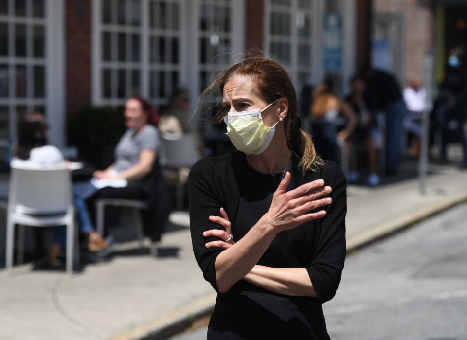 Lt. Gov. Susan Bysiewicz tours the southern end of Greenwich Avenue in Greenwich June 1, 2020. Monday began Phase 1 of closing Greenwich Avenue to vehicluar traffic as a means of providing more outdoor dining
