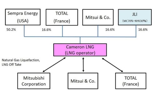 The Project is operated by Cameron LNG LLC, whose partners and shareholders include Sempra Energy (50.2%), TOTAL (16.6%), Mitsui & Co. Ltd. (16.6%), and JLI (16.6%). NYK will also provide some of the LNG transport required by the Project’s customers. Please see the schematic diagram below.