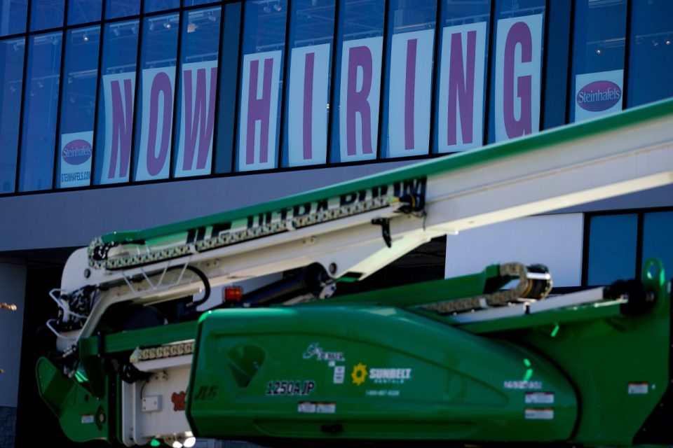 A hiring sign is displayed at a furniture store window on Friday, Sept. 17, 2021, in Downers Grove, Ill. Unemployment claims dropped 6,000 to 290,000 last week, the third straight drop, the Labor Department said Thursday, Oct. 21, 2021,. That’s the fewest people to apply for benefits since March 14, 2020, when the pandemic intensified. (AP Photo/Nam Y. Huh)