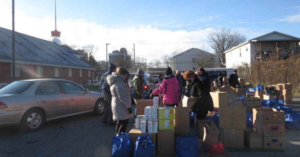 On Monday morning, cars are parked five lanes wide in the parking lot and down the block, waiting to pick up boxes or bags of supplemental and emergency food at the Metropolitan Baptist Church in Albany.