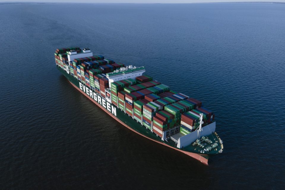 The vessel resembles a skyscraper on its side. It’s more than 100 stories long and more than 4,900 containers are on board.