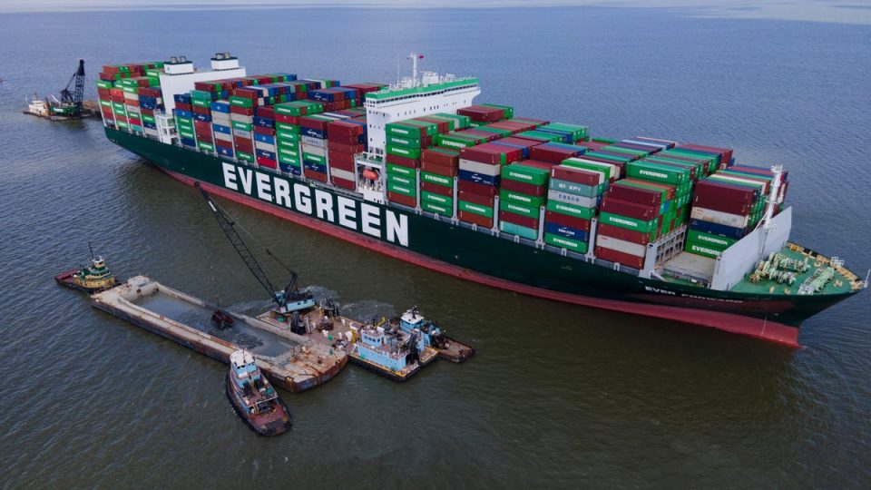 The ship is not blocking navigation, unlike the high-profile grounding in the Suez Canal of its sister vessel, the Ever Given, last year.