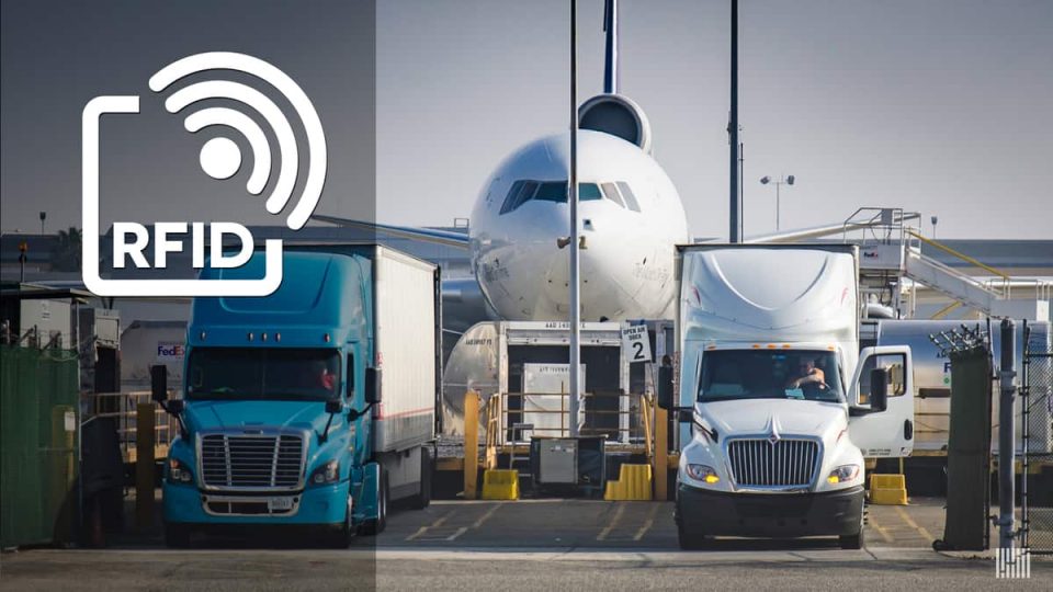 The shipper or forwarder applies the RFID tags to cargo on the front end. When the cargo arrives at the ground handler’s facility, detectors positioned at the dock doors read the tags. An overhead digital screen shows warehouse workers where the cargo is within the facility.