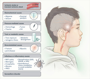 A 9-year-old boy was transferred to this hospital because of transient weakness, facial droop, and slurred speech that occurred after an episode of crying. The symptoms lasted approximately 2 minutes and then resolved. Two years earlier, the patient had been evaluated for episodes of shaking in the arms and legs. A diagnosis was made.