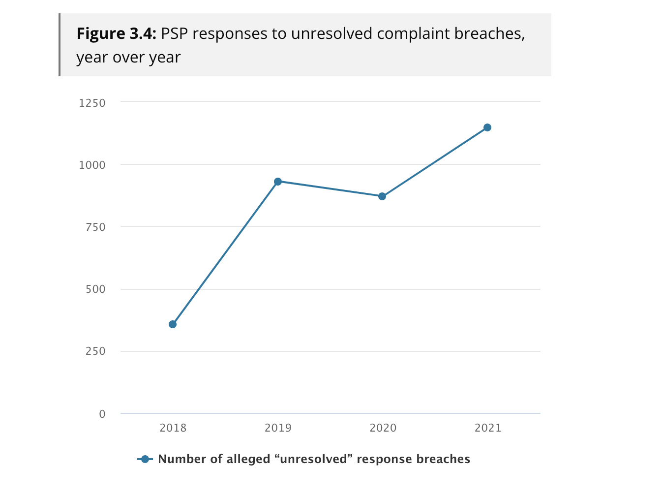 “The CCTS continues to observe a concerning trend that PSPs are not fulfilling their requirement to provide a response or all supporting documentation with their response to an unresolved complaint at the initial pre-investigation level,” the report notes.
