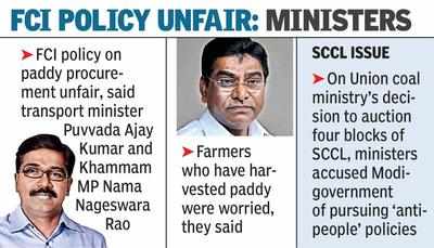 Transport minister Puvvada Ajay Kumar and Khammam MP Nama Nageswara Rao said that the Food Corporation of India’s (FCI) policy in paddy procurement was unfair.