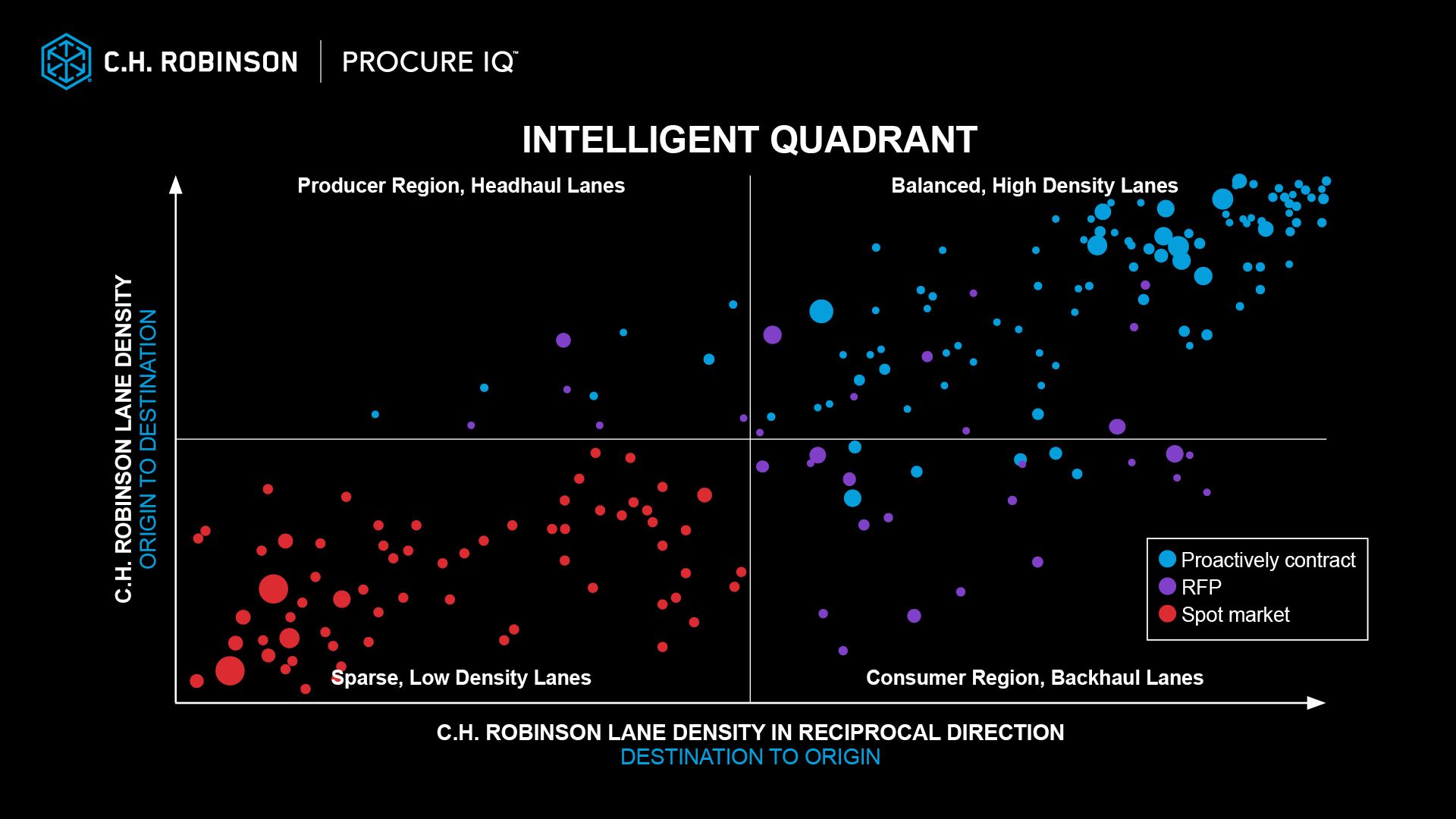 The Procure IQ tool can suggest a proactive contract with C.H. Robinson or another carrier to create multi-leg, dedicated or continuous moves. And C.H. Robinson said it helps shippers determine how much risk is too much risk from the spot market pricing on a particular lane.