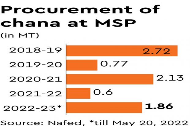 Farmers’ cooperative so far has purchased chana in Madhya Pradesh (0.54 MT), Maharashtra (0.54 MT), Gujarat (0.5 MT), Karnataka (0.07 MT), Telangana (0.05 MT) and Andhra Pradesh (0.6 MT) from farmers since the beginning of the month.
