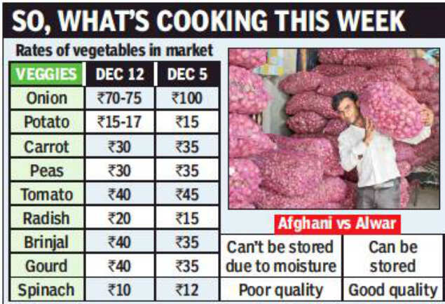 The onion sellers in Sector 26 market said, “The rates depend on the stock. In mid November, when three trucks came to the region, rates had fallen. Same as now, the consignment from Afghanistan came to the wholesalers and rates had fallen.”