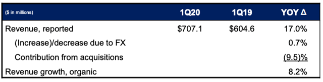 Management disclosed that they have almost $900mm in borrowing capacity (after drawing down $150mm), they plan to slow the pace on the M&A front and have implemented other direct cost saving initiatives (mostly within the RMS operating unit). Simply put, management was able to properly position the company to deal the near-term COVID-19 headwinds.