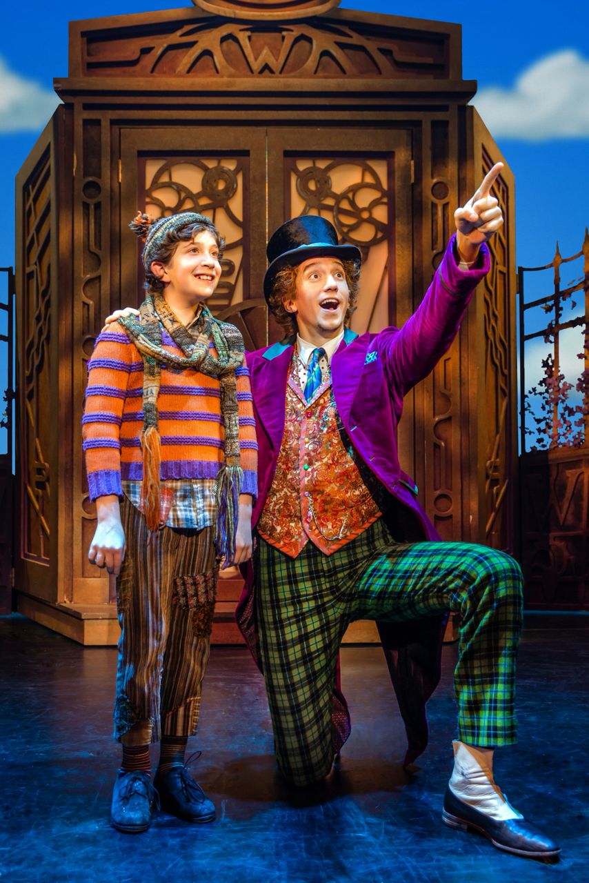 William Goldsman as Charlie Bucket and Cody Garcia as Willy Wonka. Roald Dahl’s CHARLIE AND THE CHOCOLATE FACTORY. Photo by Jeremy Daniel.