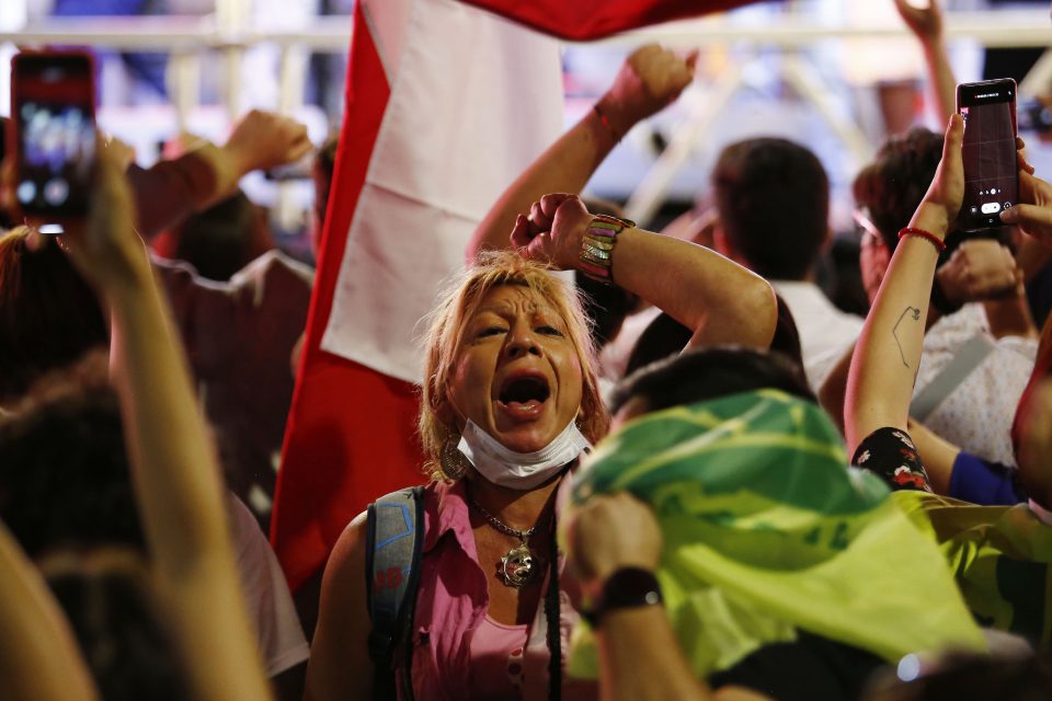 A supporter of candidate for Convergencia Social Gabriel Boric shouts slogans at the end of the Presidential Elections on November 21, 2021 in Santiago, Chile.