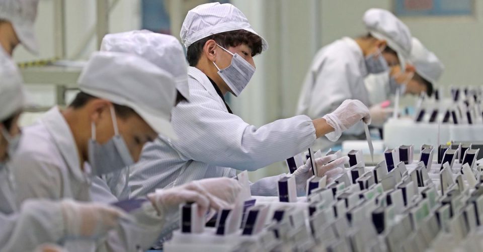 Workers are seen at a production line manufacturing solar photovoltaic components at a factory in Huzhou, Zhejiang province, China February 12, 2019. Picture taken February 12, 2019. Lin Yunlong/Zhejiang Daily via REUTERS ATTENTION EDITORS – THIS IMAGE WAS PROVIDED BY A THIRD PARTY. CHINA OUT.