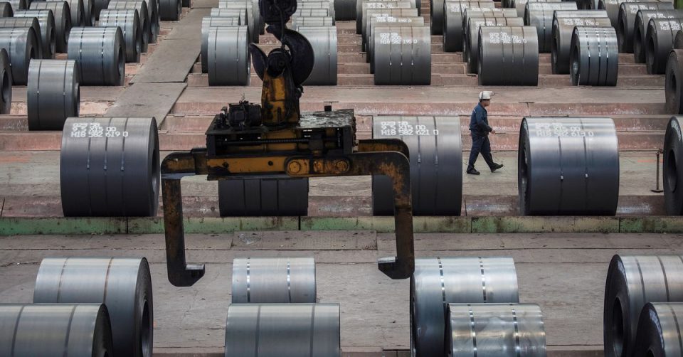 A worker walks past steel rolls at the Chongqing Iron and Steel plant in Changshou, Chongqing, China August 6, 2018. REUTERS/Damir Sagolj/File Photo