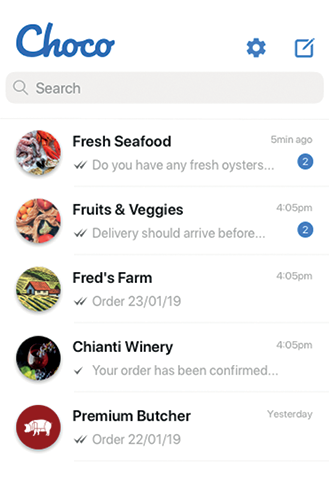 Choco offers restaurants a mobile app through which they can find and purchase produce. The idea here is that rather than having to pick up a phone to contact 10-15 suppliers, which is time-consuming and leaves no record of the order ever having been placed, they can instead place their orders from multiple suppliers through a single app. Automatic notifications, alerts, and confirmations are very much part of the promise here.