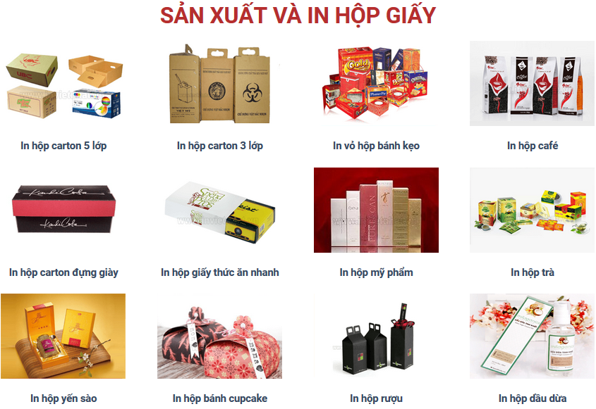 • Outsourcing printing packages, paper bags, paper boxes (làm hộp giấy, in bao bì túi giấy)