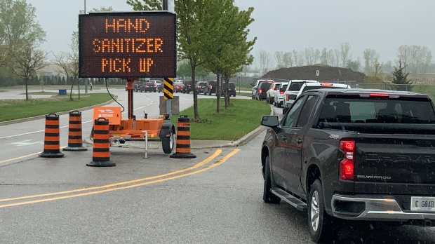 The City of Windsor will offer free hand sanitizer through a no-contact drive-thru at the WFCU Centre Thursday from 9 a.m. to 1 p.m. while supplies last. Drivers are asked to enter through the intersection of McHugh Street and Mickey Renaud Way and follow the signs to the depot tents.