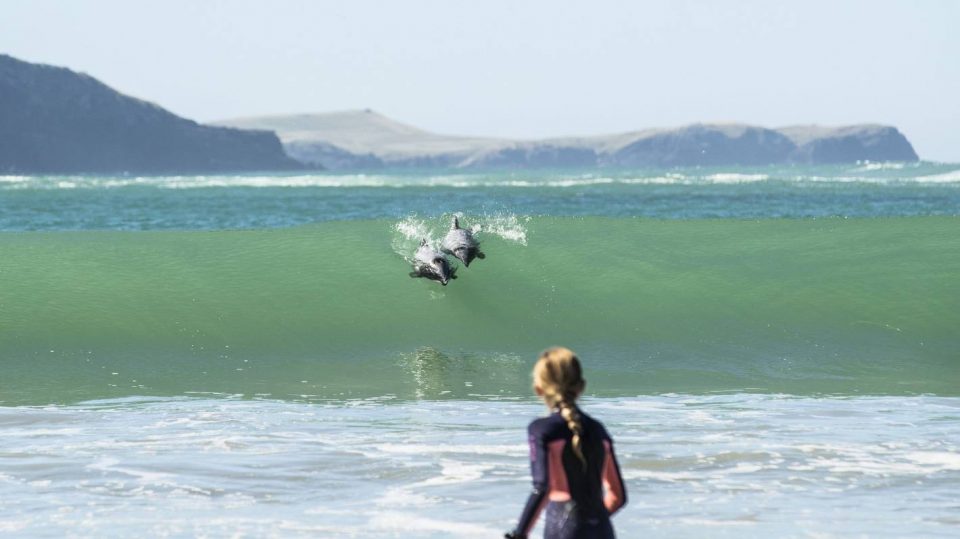 Hector’s dolphins have been filmed engaging with paddleboarders in Southland waters before.